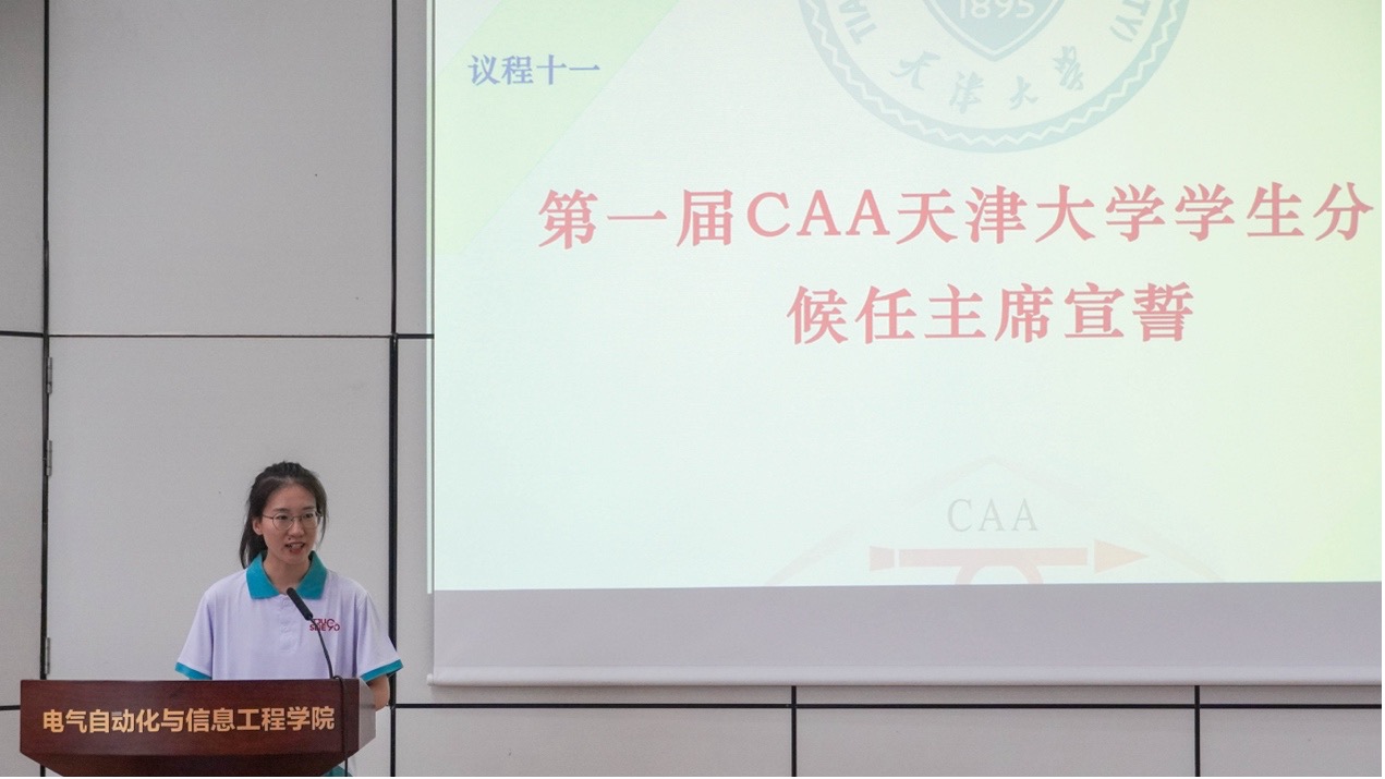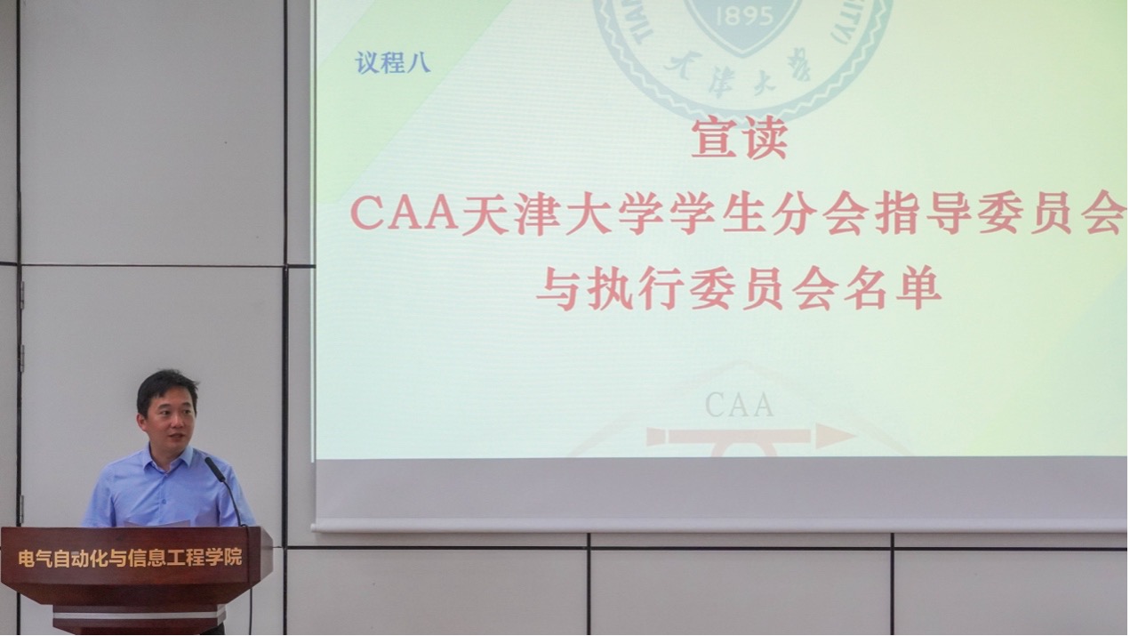 会议伊始,中国自动化学会会士、副理事长王成红研究员致开幕辞,明确中国自动化学会天津大学学生分会的成立宗旨,鼓励自动化学子积极参与学术与科研活动,为中国自动化学会和中国自动化领域做出更大的贡献。随后,中国自动化学会秘书长张楠宣读《关于同意CAA天津大学学生分会召开成立大会的批复》,并宣读候选人名单。最后,天津大学电气自动化与信息工程学院院长谭超作为院领导致辞,明确这次大会的主要任务和分会建设,表示对学会活动学院将大力支持,并对天津大学学生分会的未来发展寄予厚望。