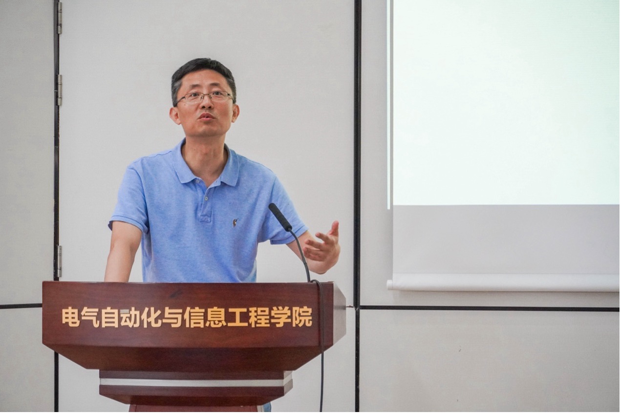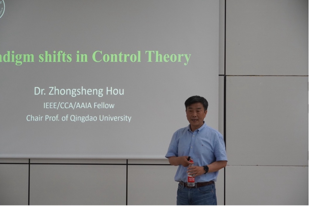 随后,天津市智能无人集群技术与系统重点实验室前沿论坛隆重召开,五位专家展开了精彩的报告,吸引了大量老师和学生参会。IEEE Fellow, 中国自动化学会会士,青岛大学系统科学研究院院长侯忠生教授以《控制理论研究中的范式转移》为题,首先介绍控制理论研究中的范式概念以及相关内容,随后介绍数据驱动控制的定义和动机目的。紧接着以无模型自适应控制为例,介绍如何设计数据驱动控制系统。