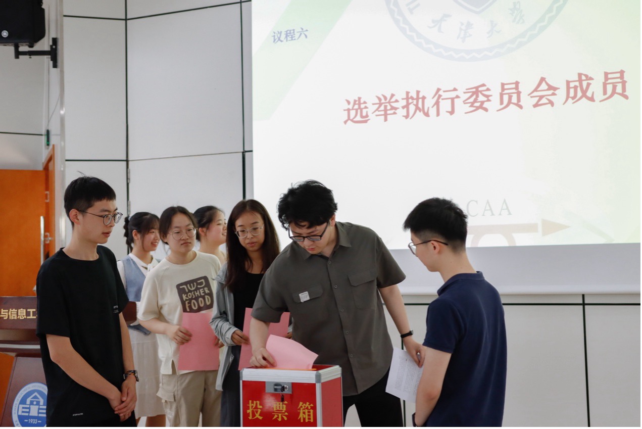 秉承公平、公正、公开的原则,大会组织中国自动化学会学生代表投票选举中国自动化学会天津大学学生分会执行委员会成员。统票结束后,总监票人宣读选举结果,院长谭超教授公布中国自动化学会天津大学学生分会指导委员会和第一届执行委员会名单。